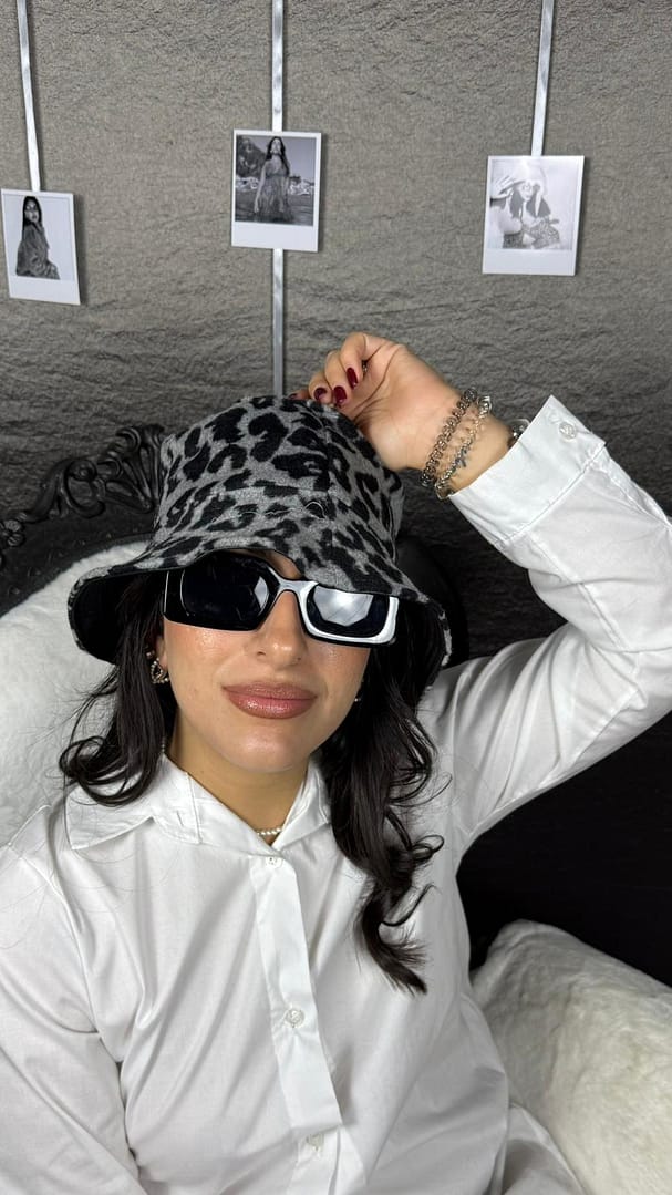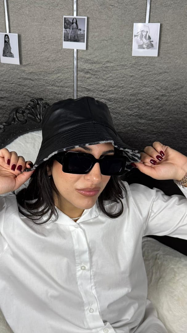 Cappello double-face leopardato/ecopelle nero.Informazioni aggiuntive