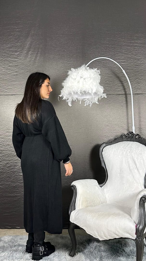 Maxi cardigan con doppia chiusura e manica ampia, vestibilità 36/46.