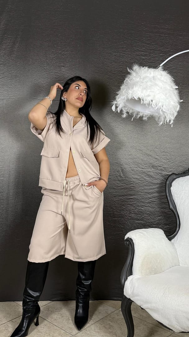 Coordset composto da camicia collo coreano e bermuda, vestibilità 36/46.Informazioni aggiuntive
