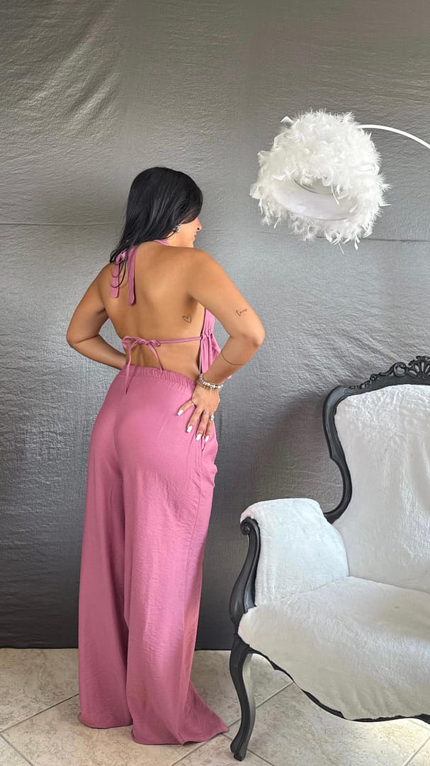 Coordinato composto da pantalone palazzo con coulisse e top con coppe e lacci, vestibilità 36/46.Informazioni aggiuntive