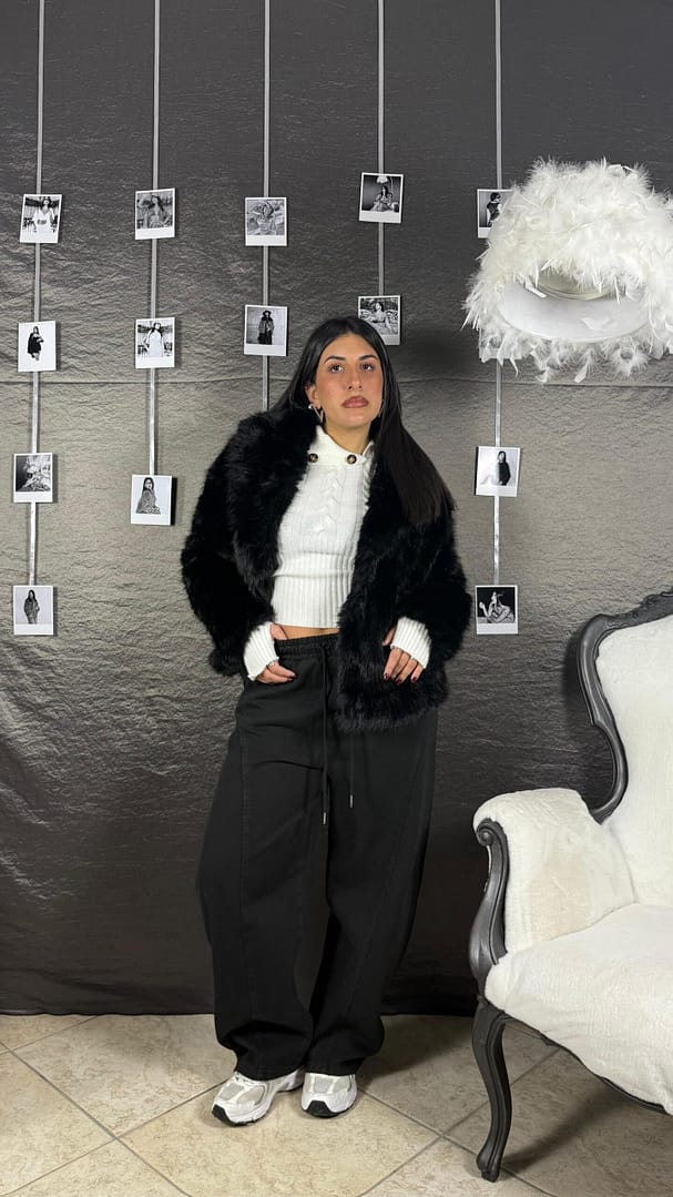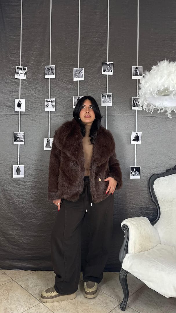Ecopelliccia con collo giacca, vestibilità 36/46.Informazioni aggiuntive