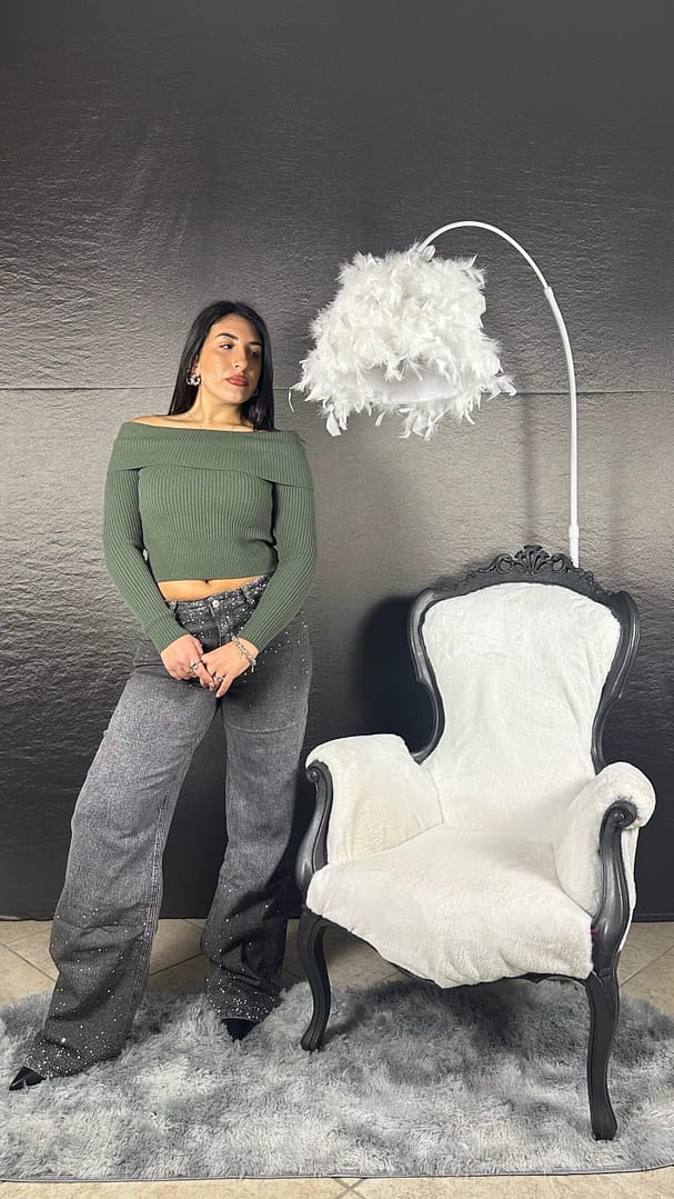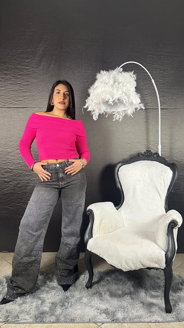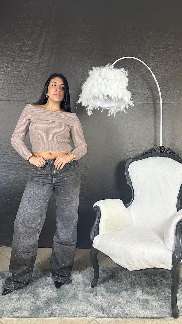 Pull crop con scollo a barca a costine, vestibilità 36/46.Informazioni aggiuntive