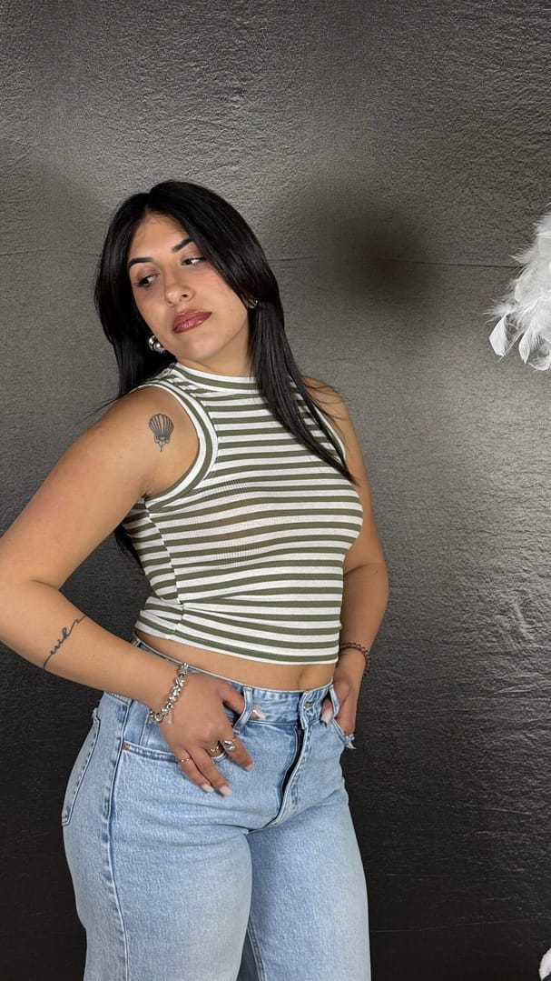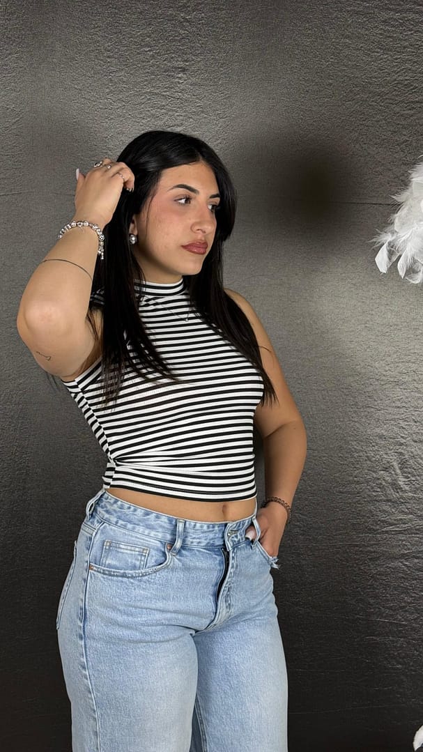 Top a costine a righe in cotone, vestibilità 36/46.Informazioni aggiuntive