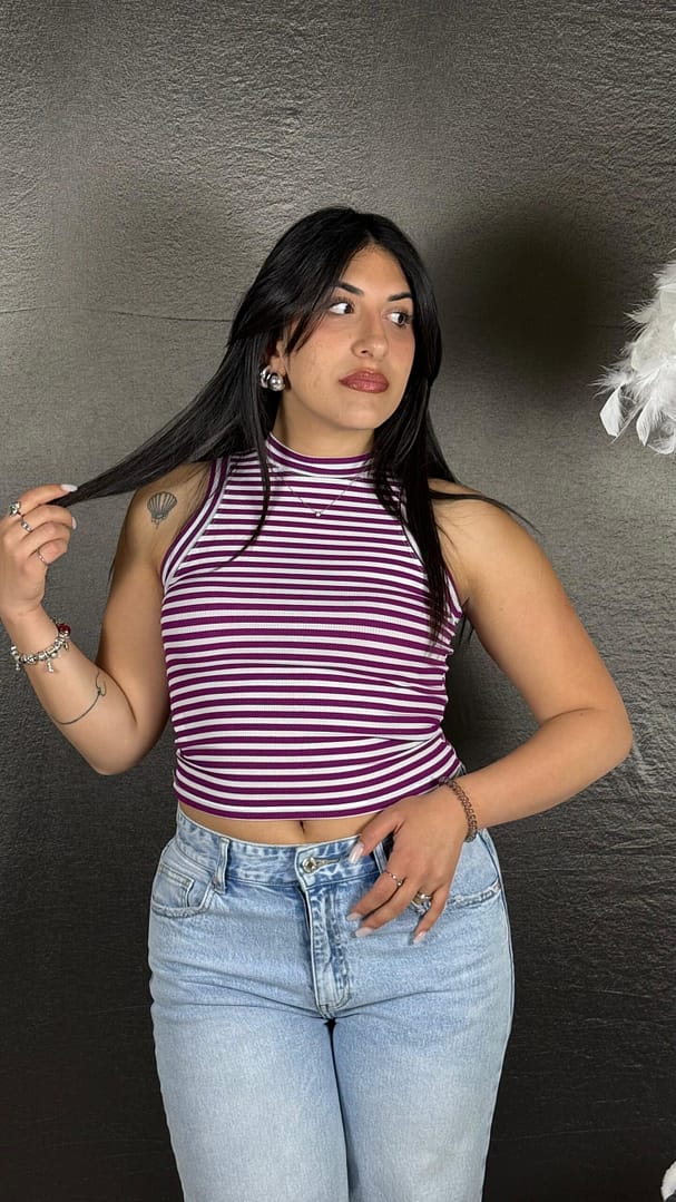 Top a costine a righe in cotone, vestibilità 36/46.